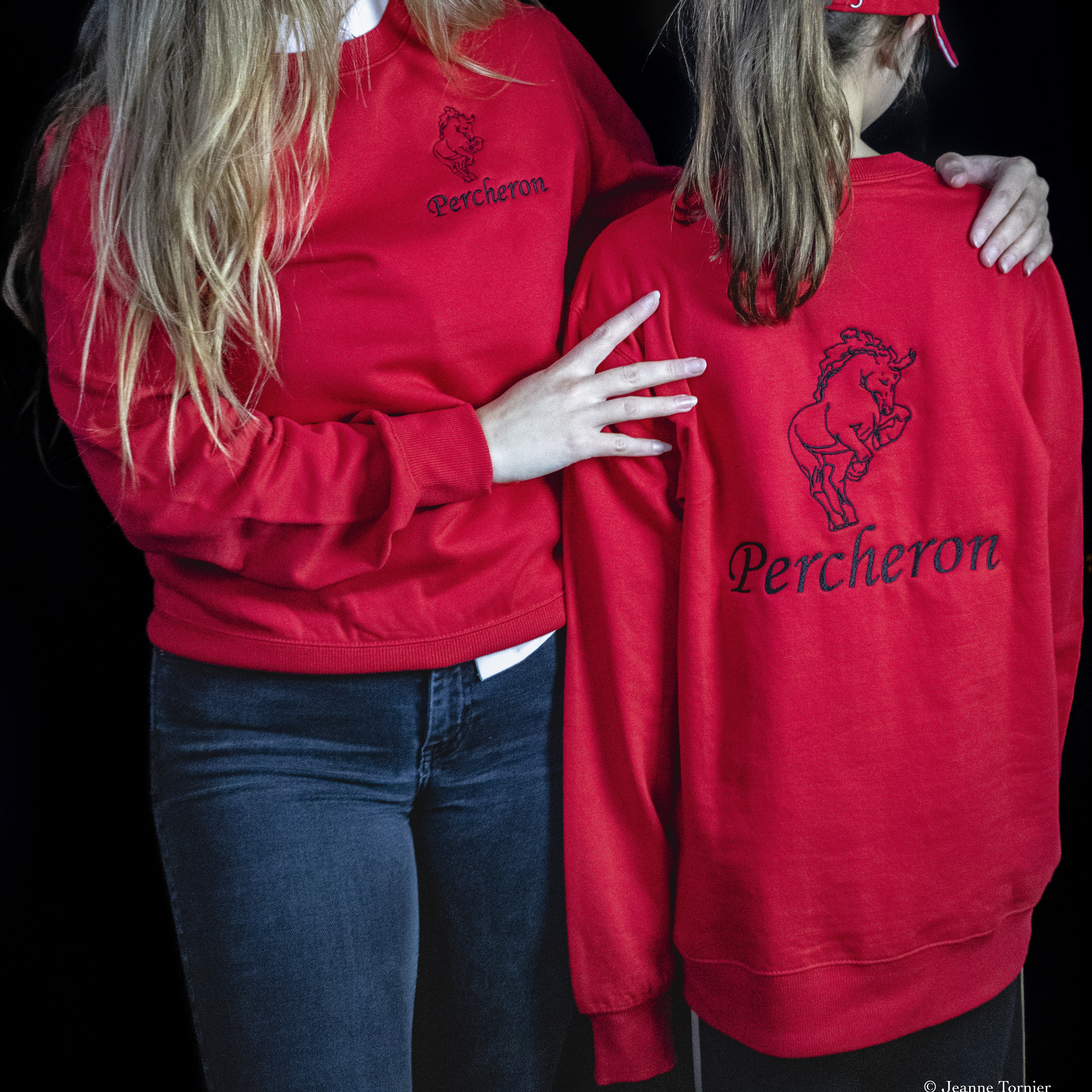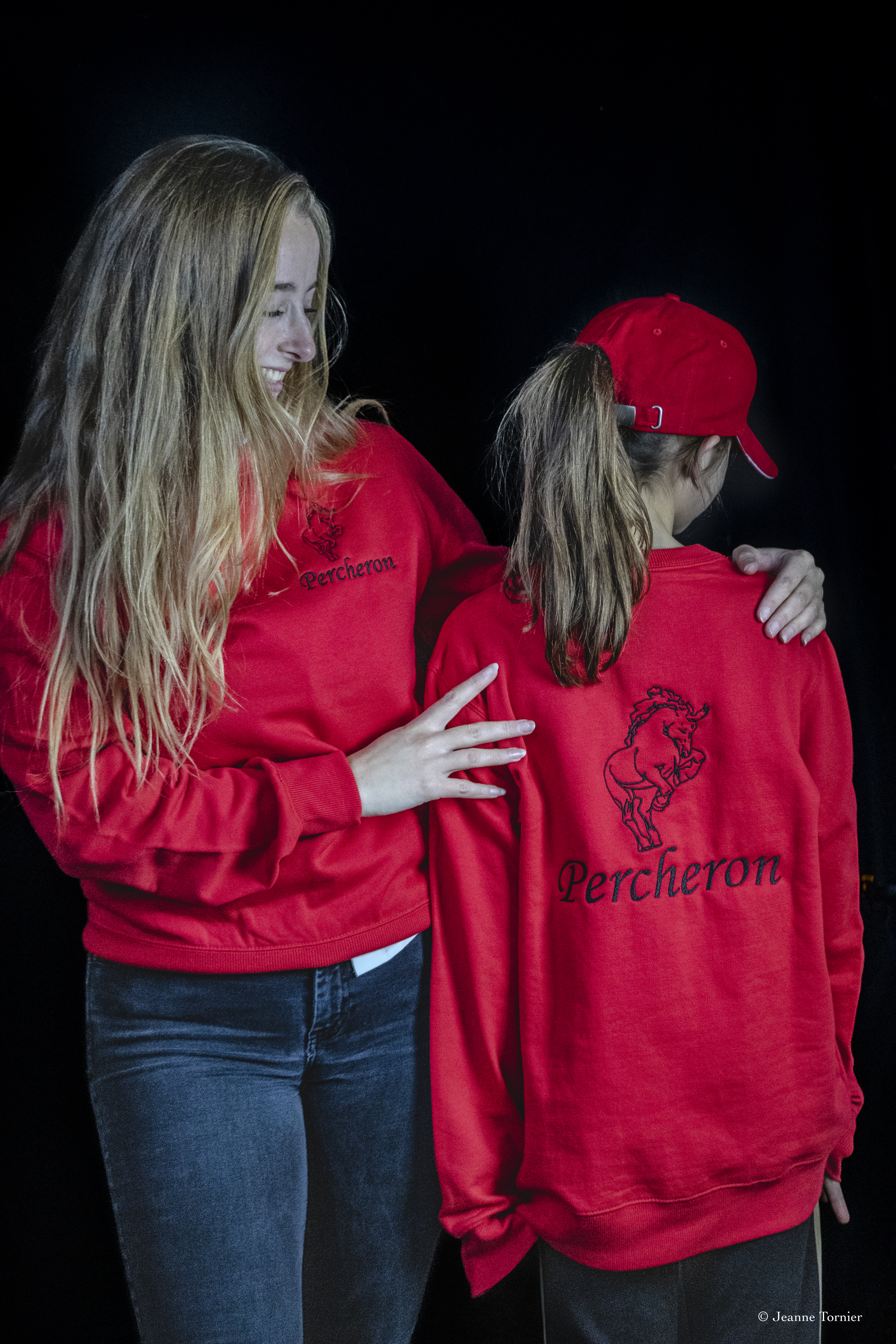 Sweat rouge, broderie noire coeur et dos