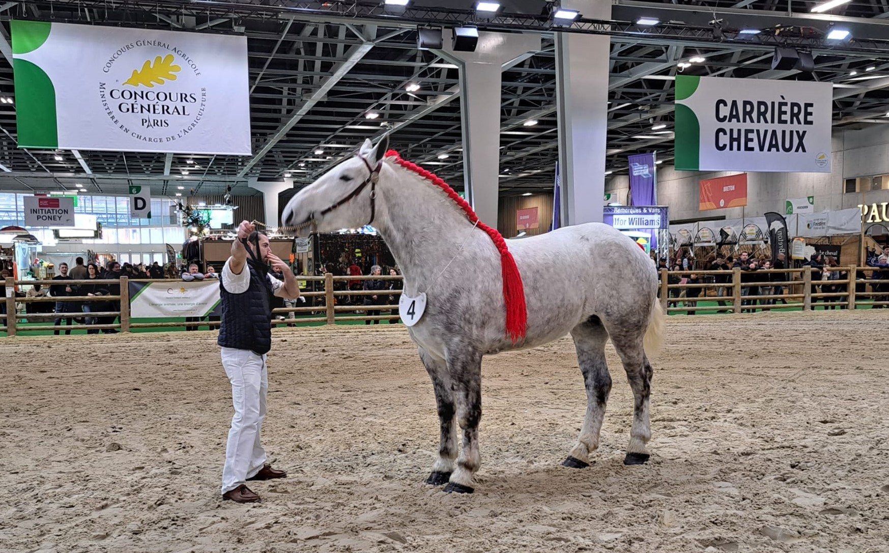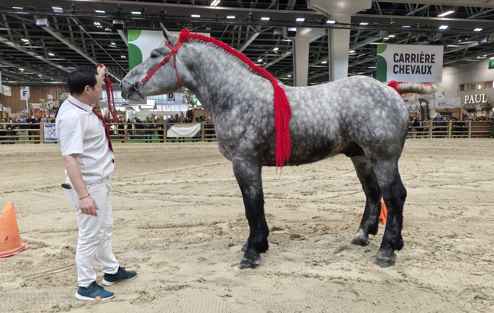 Le concours général agricole pour la race percheronne s'est déroulé lundi 23 février au salon international de l'agriculture, à Paris Porte de Versailles.