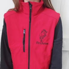 Veste couleur rouge sans manches. Broderie noire coeur Cheval Percheron. Idéale pour porter à la mi-saison en présentation sur une chemise...